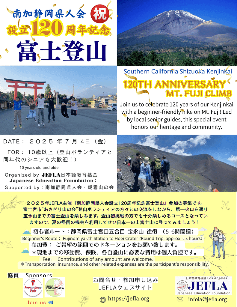 2025年JEFLA主催「南加静岡県人会設立120周年記念富士登山」参加の募集のお知らせ